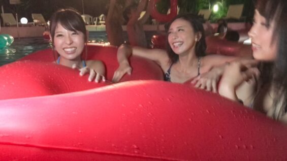 水着姿に着替えてからの王様ゲームによりアルコールブーストがかけられると、一組が別の部屋に消えてHなコトを始めてしまう。それに触発させるように全員が入り乱れ、3対3の大乱交に発展!3人が横並びでフェラするシーンは圧巻!そしてチ○ポと乳首を同時に3人に責めてもらうなんていう贅沢プレイも!ご奉仕してる最中に気づいたら別の男に挿入されちゃったりなんかもして…。やっぱり水着姿の女の子って最高!